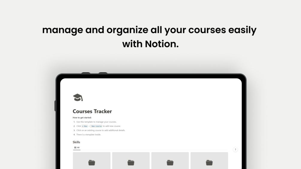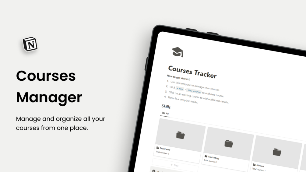Receive a free Notion template that will help you manage and track your courses with the easy-to-use Courses Tracker.