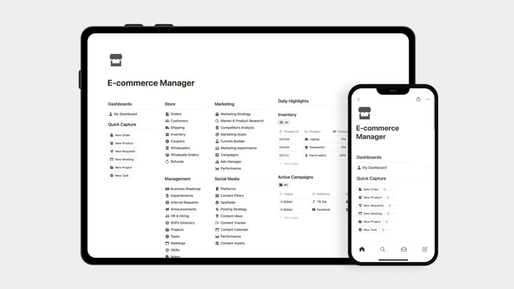 The Notion E-commerce manager can help you effortlessly manage your online store and take your business to the next level.