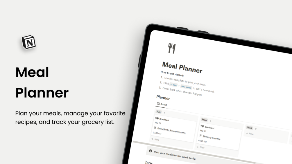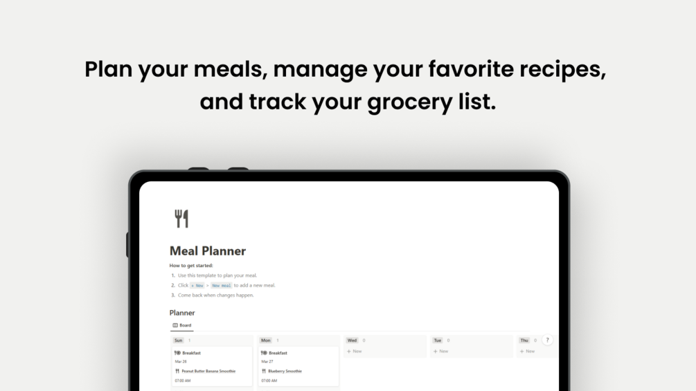 Plan your meals for the week, manage your favorite recipes, and track your grocery list.