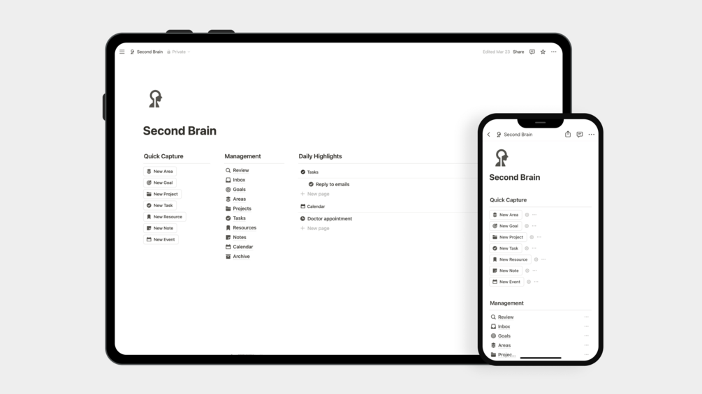 Notion second brain is a personal knowledge management system that helps you manage and organize your life from one place.