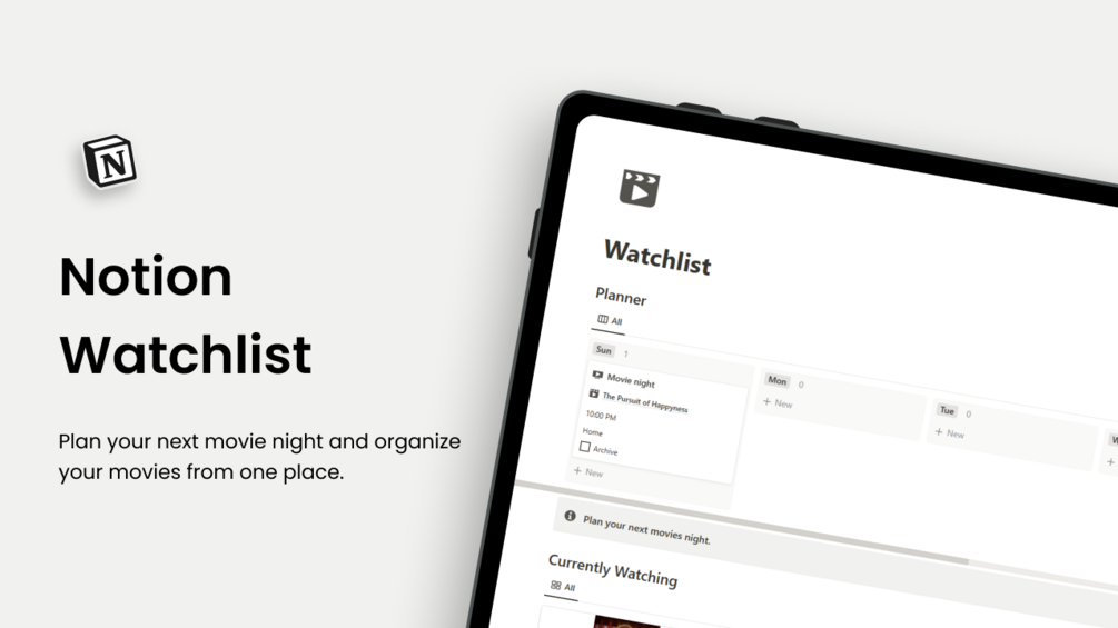 Receive a free Notion template to help you Plan your next movie night and organize your movies in Notion.
